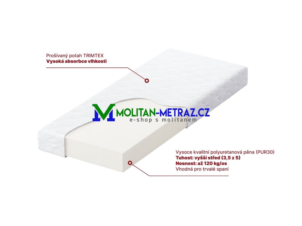 Molitanová matrace - PUR30+ VÝŠKA 15CM, NOSNOST 120 KG, tuhost: vyšší střed [3,5 z 5]